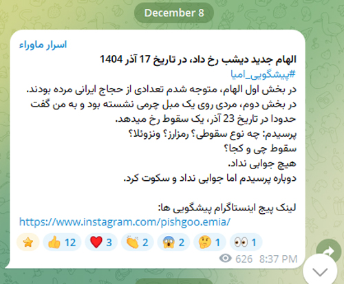 پیشگویی امیا در مورد سقوط هنوز در کانال تلگرام اسرار ماوراء وجود دارد: